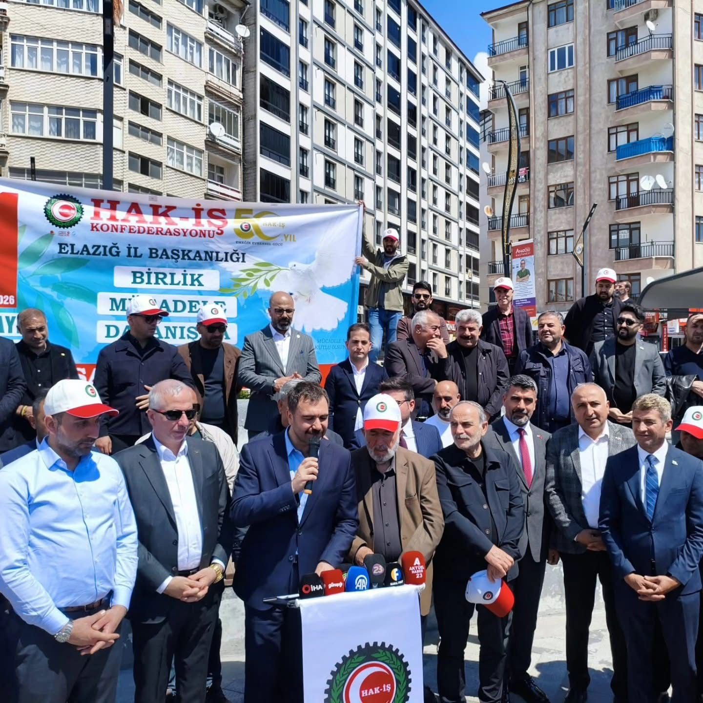 Hak-İş Genel Başkan Yardımcısı Mehmet Ali Kayabaşı Başkanlığında Elazığ Cumhuriyet Meydanı’nda toplanan HAK-İŞ üyesi emekçiler ile birlikte “Sendikal Örgütlenme ve İş Mevzuatının Güncel Sorunları” konulu talepler dile getirildi.
